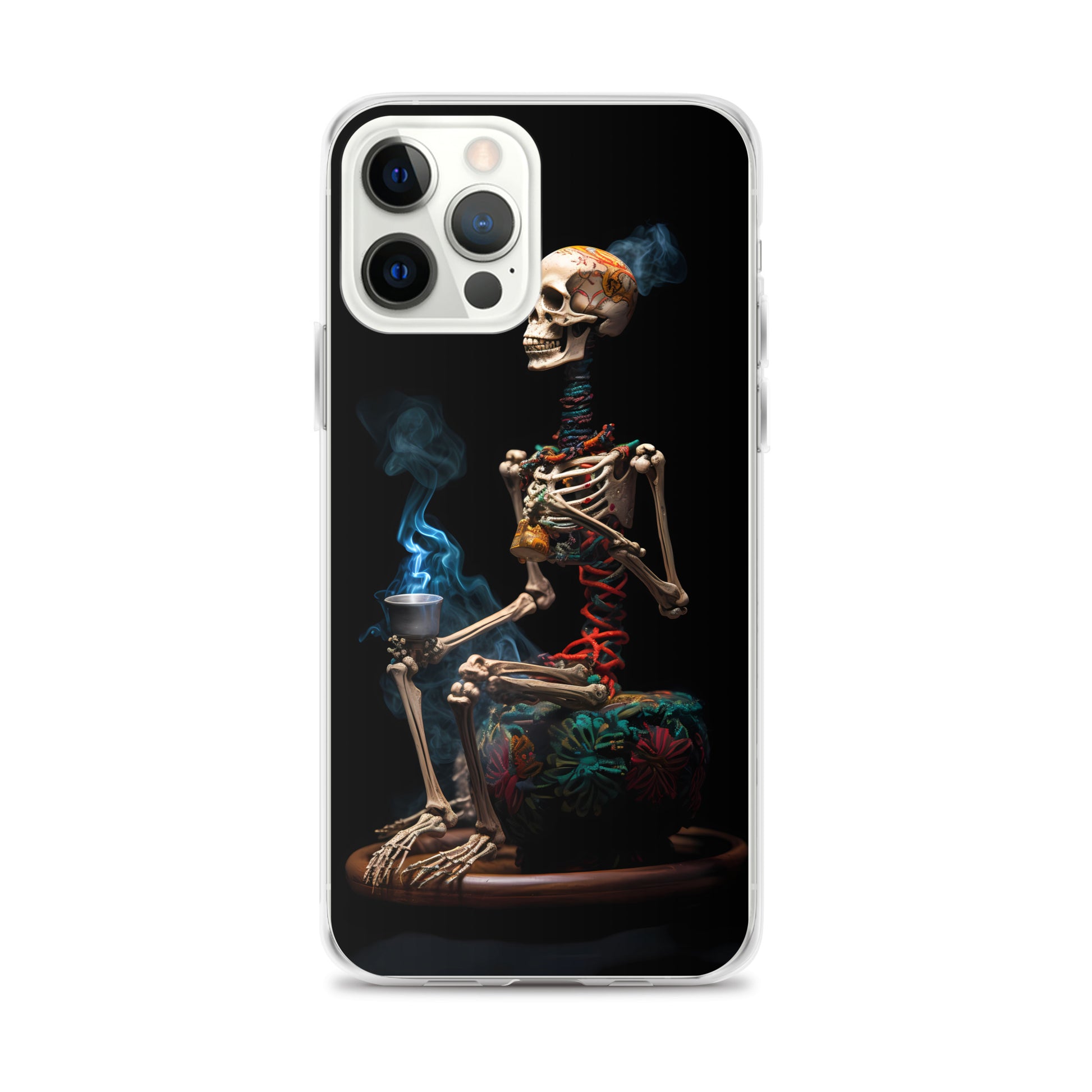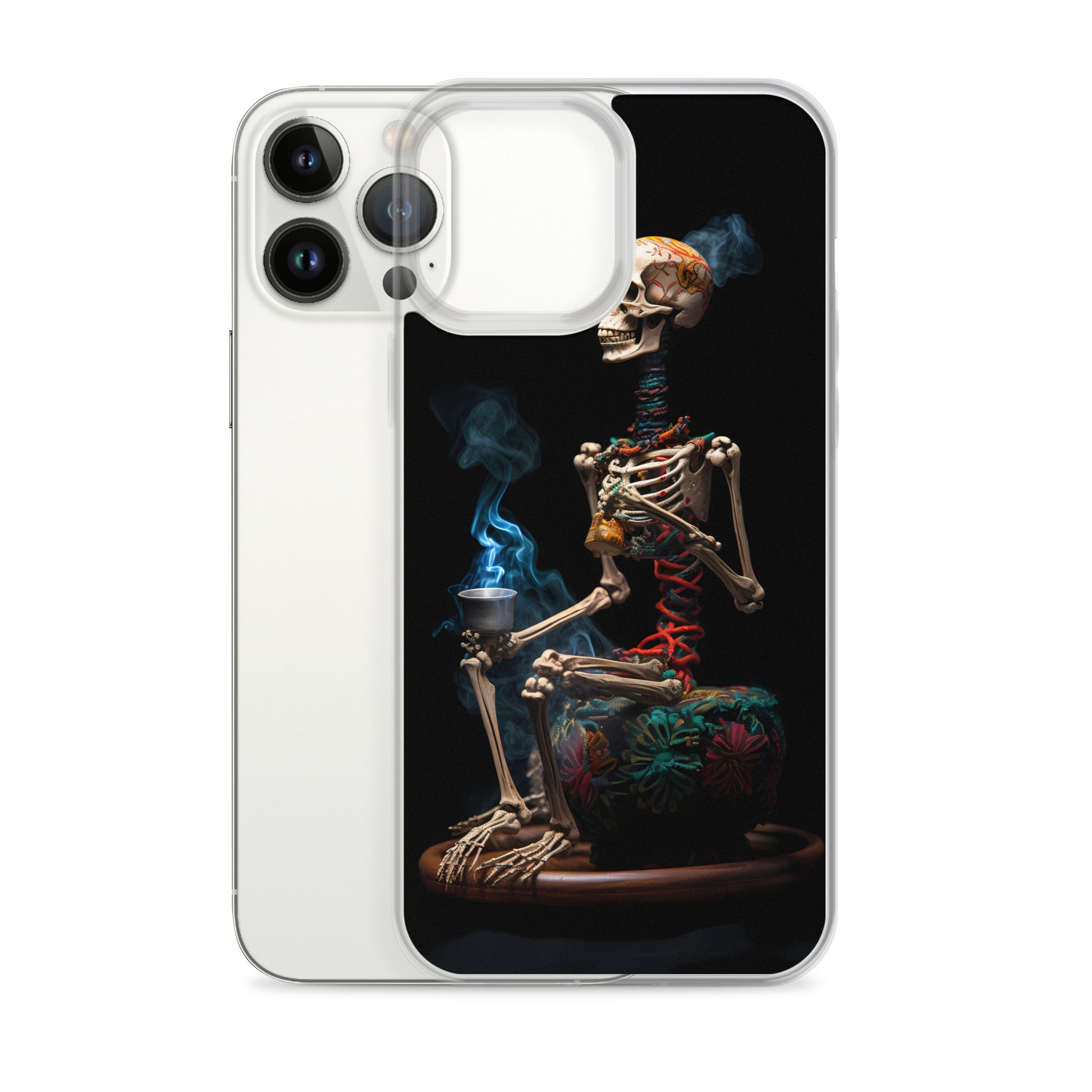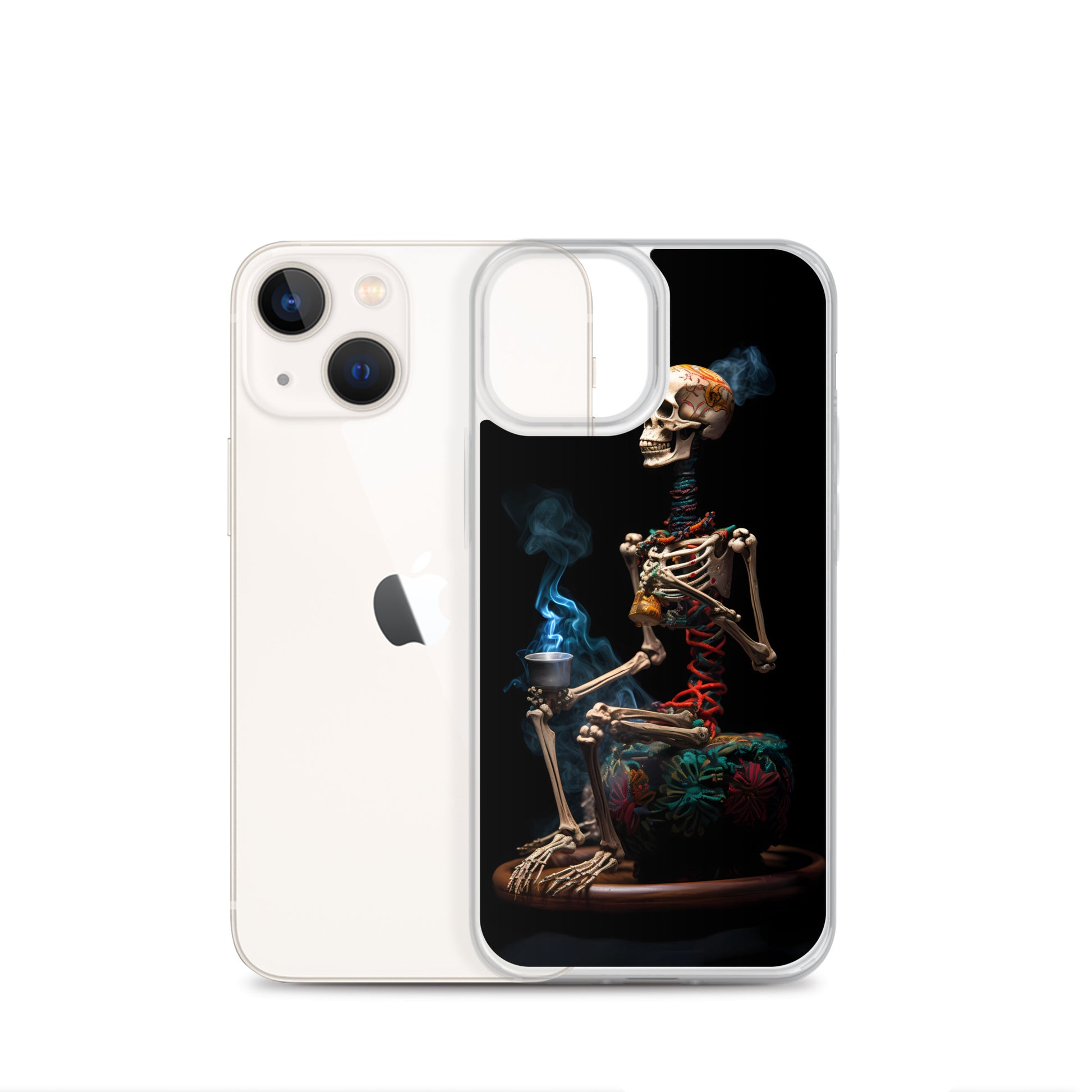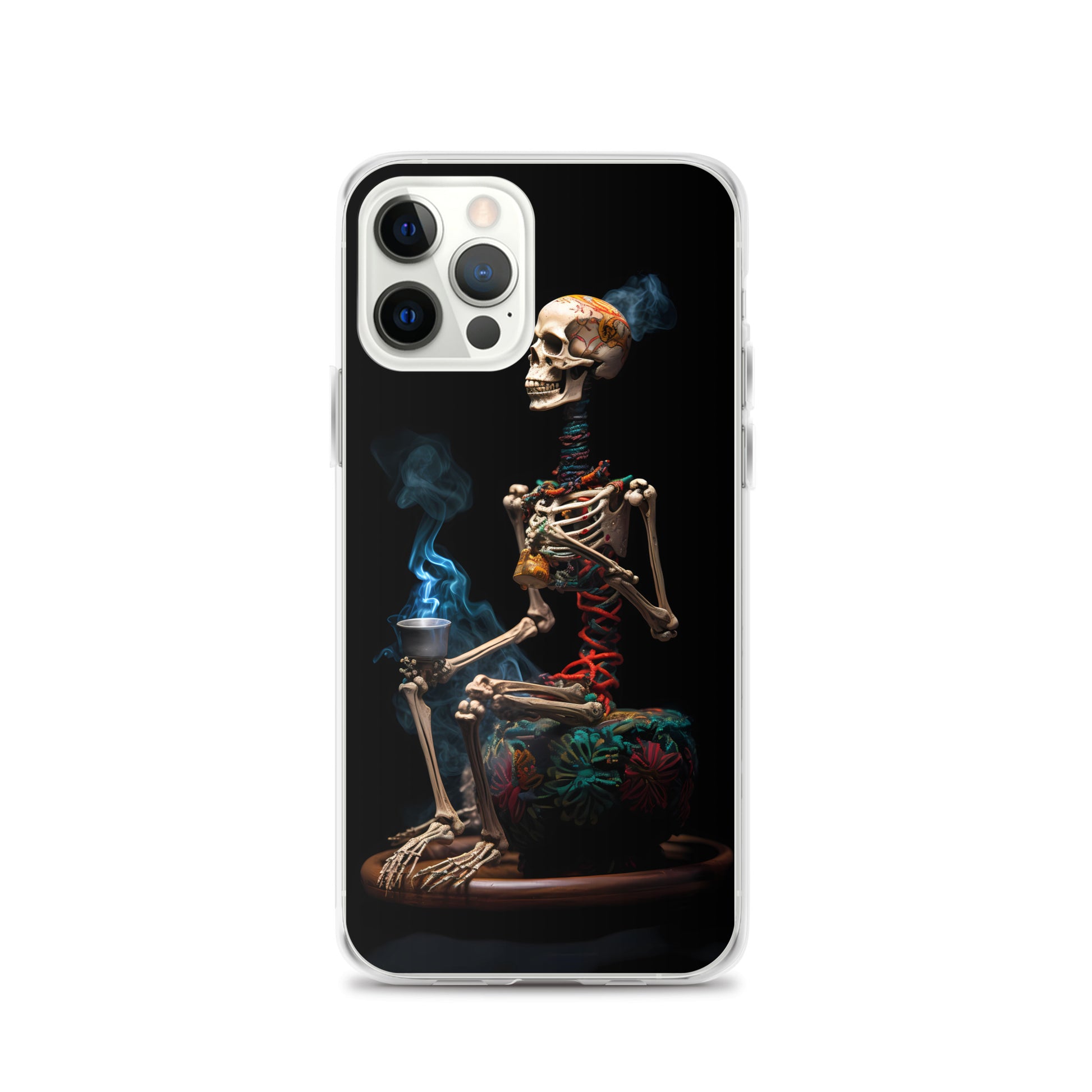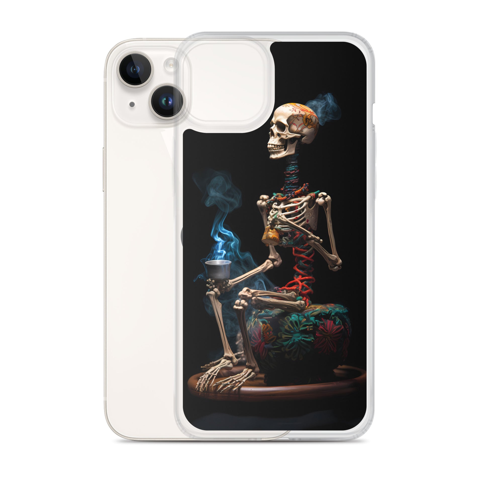 Elevate your phone style with the "Dream Smoke" Seated Skeleton iPhone Case. Inspired by hazy, dreamlike qualities, this case features a meticulously detailed still life of a skeleton sitting and smoking a cigarette. The dark humor graphic prints and symbolic props add a unique touch to the surrealist and colorful design, making it a conversation starter wherever you go.