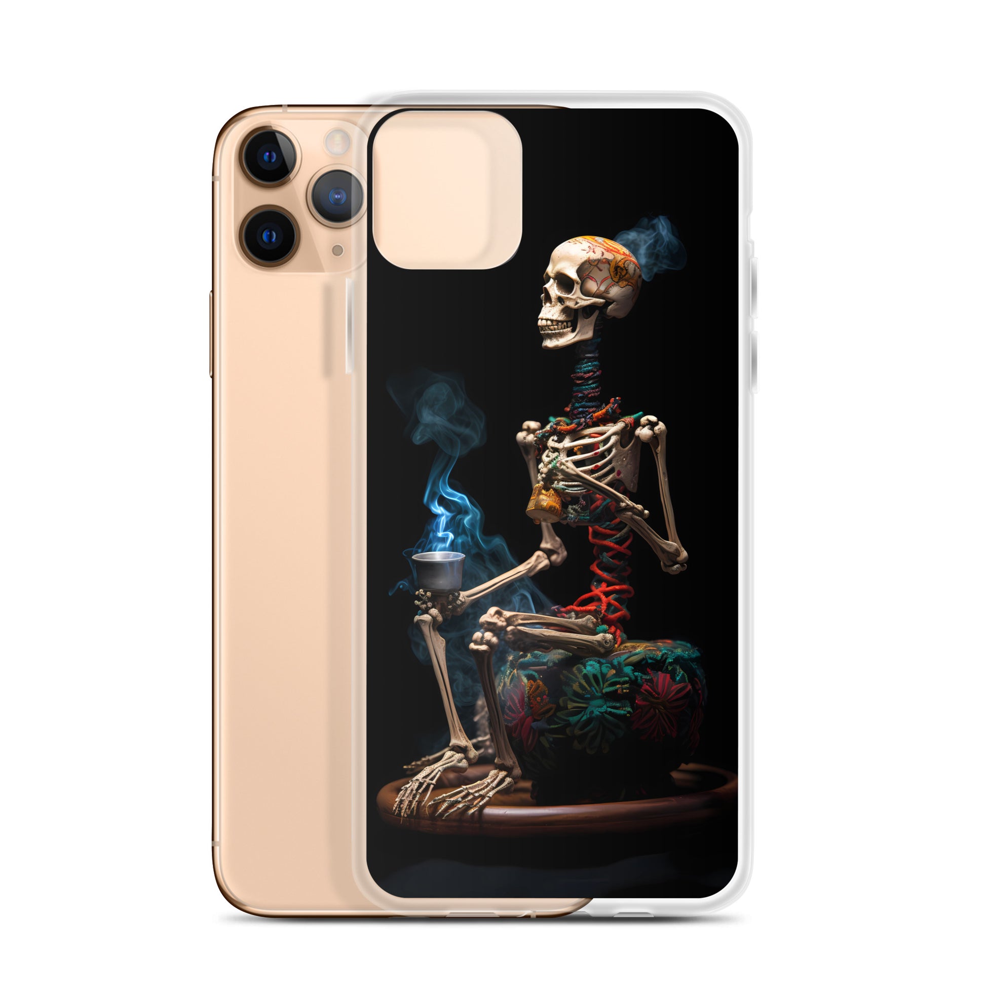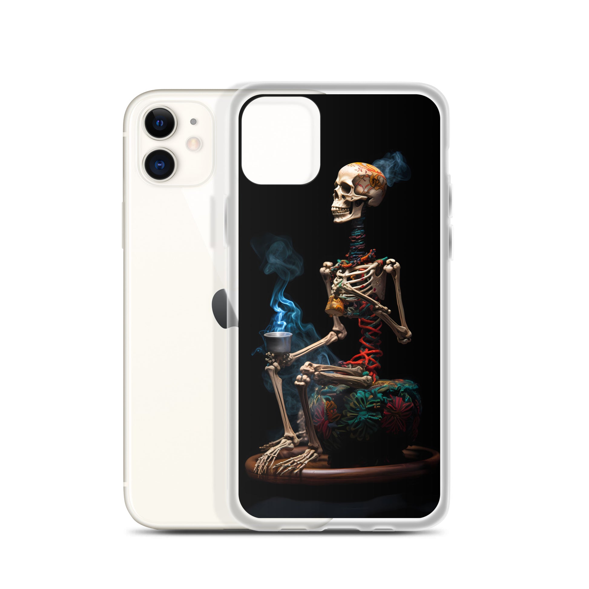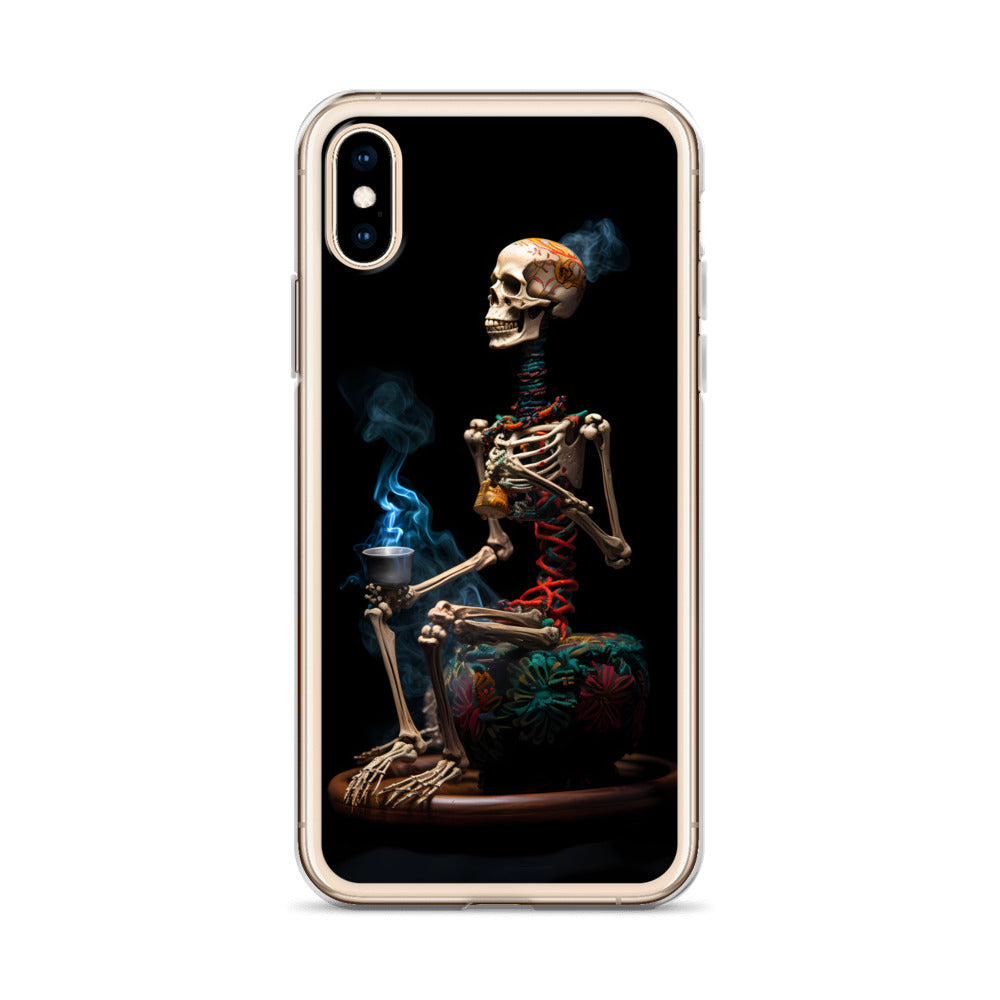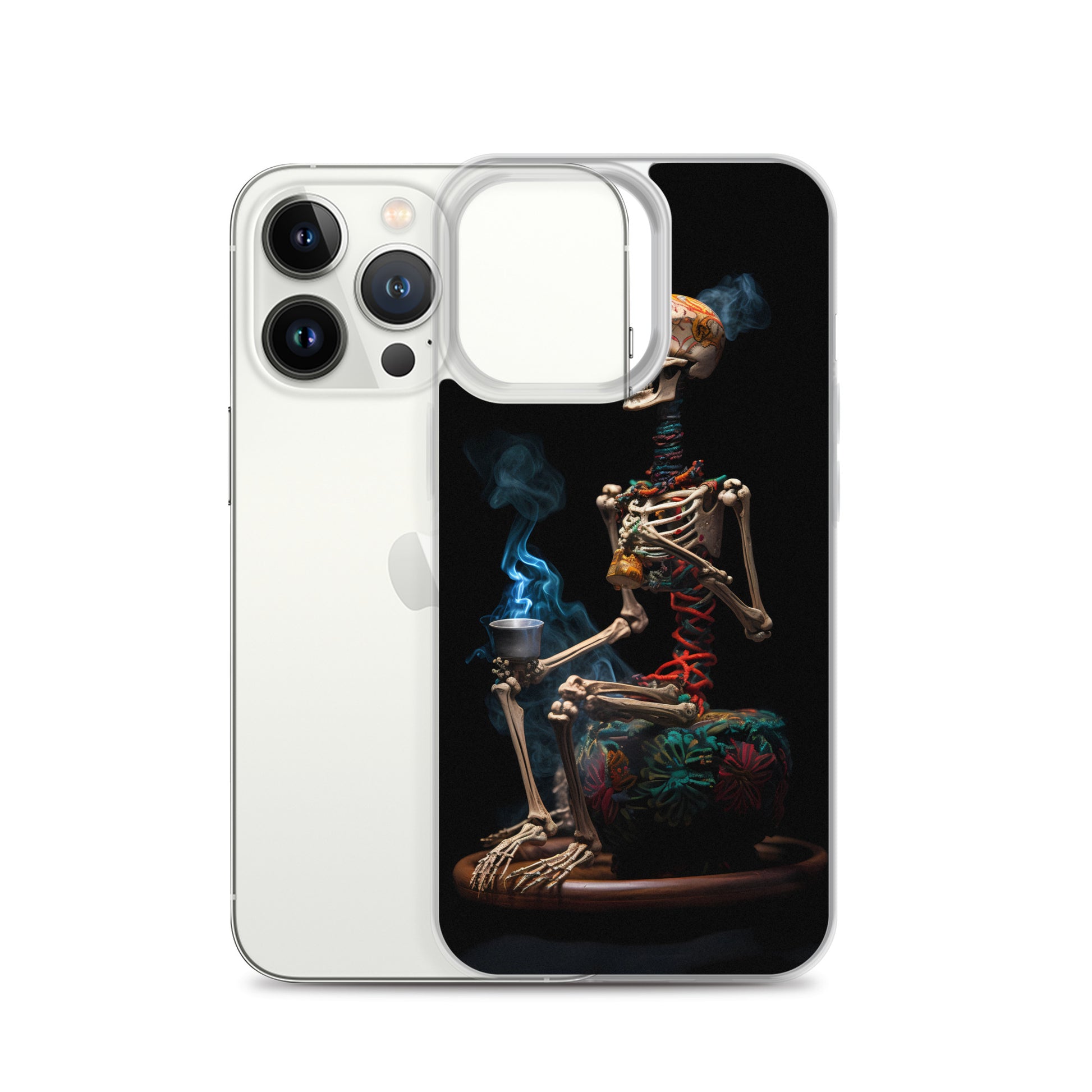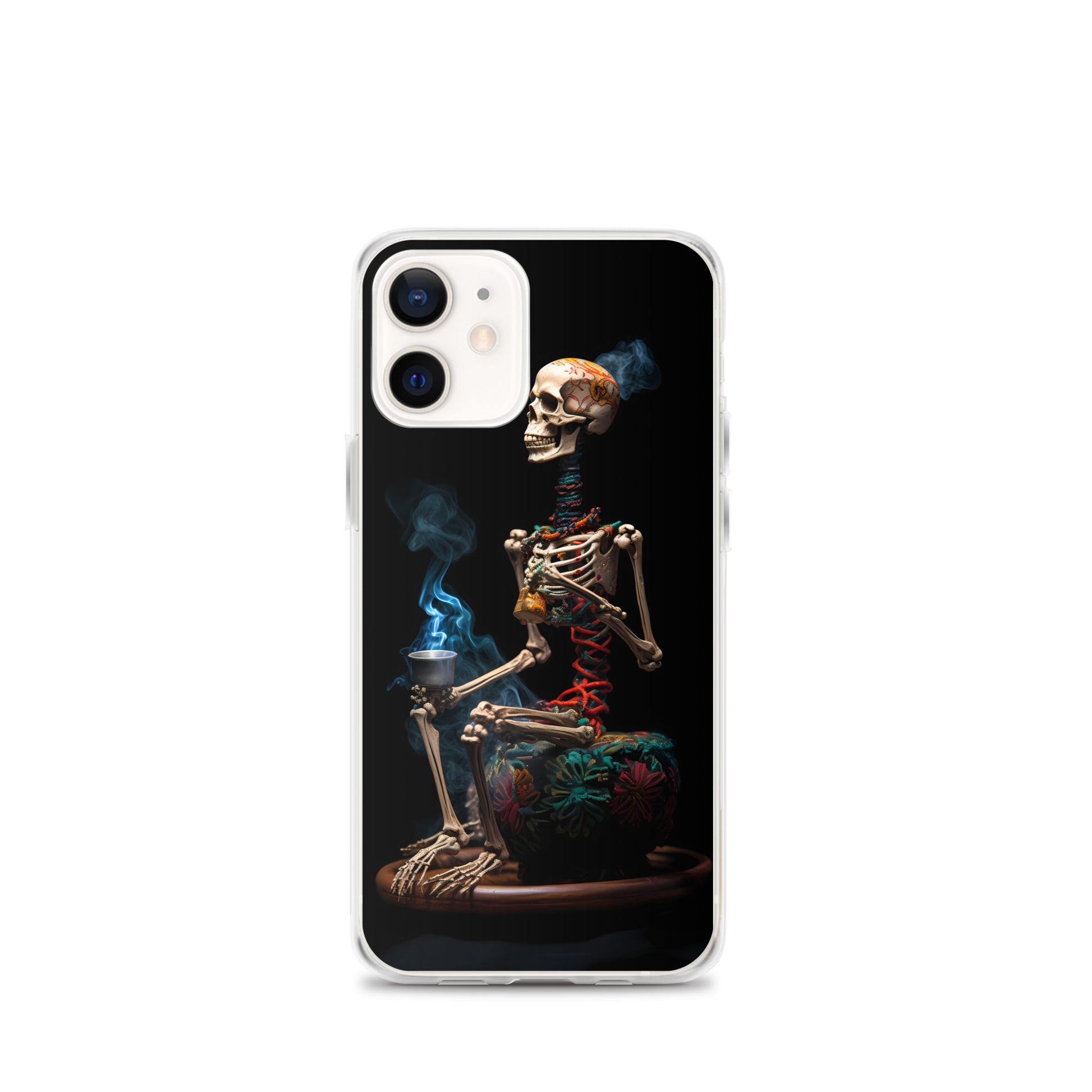 Elevate your phone style with the "Dream Smoke" Seated Skeleton iPhone Case. Inspired by hazy, dreamlike qualities, this case features a meticulously detailed still life of a skeleton sitting and smoking a cigarette. The dark humor graphic prints and symbolic props add a unique touch to the surrealist and colorful design, making it a conversation starter wherever you go.