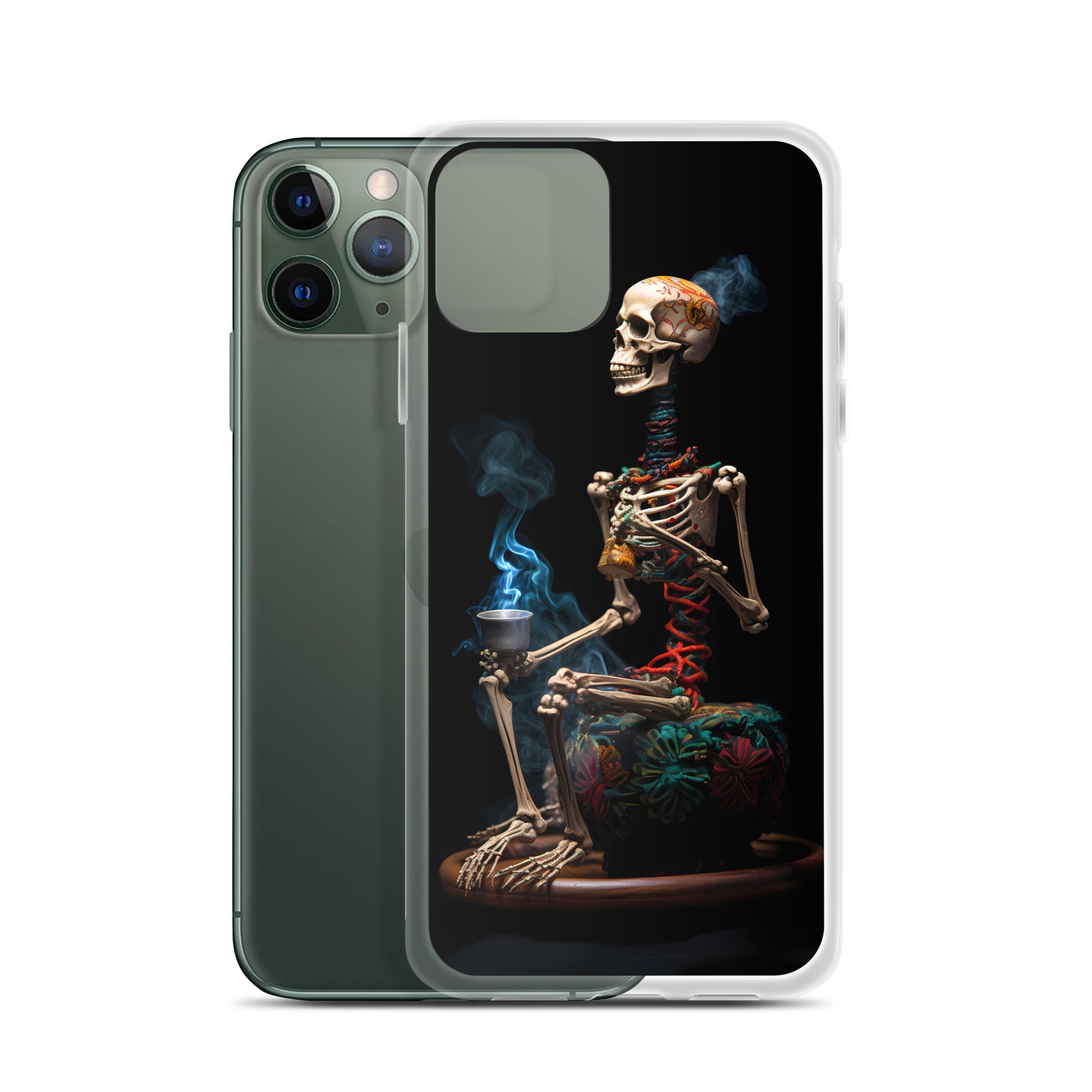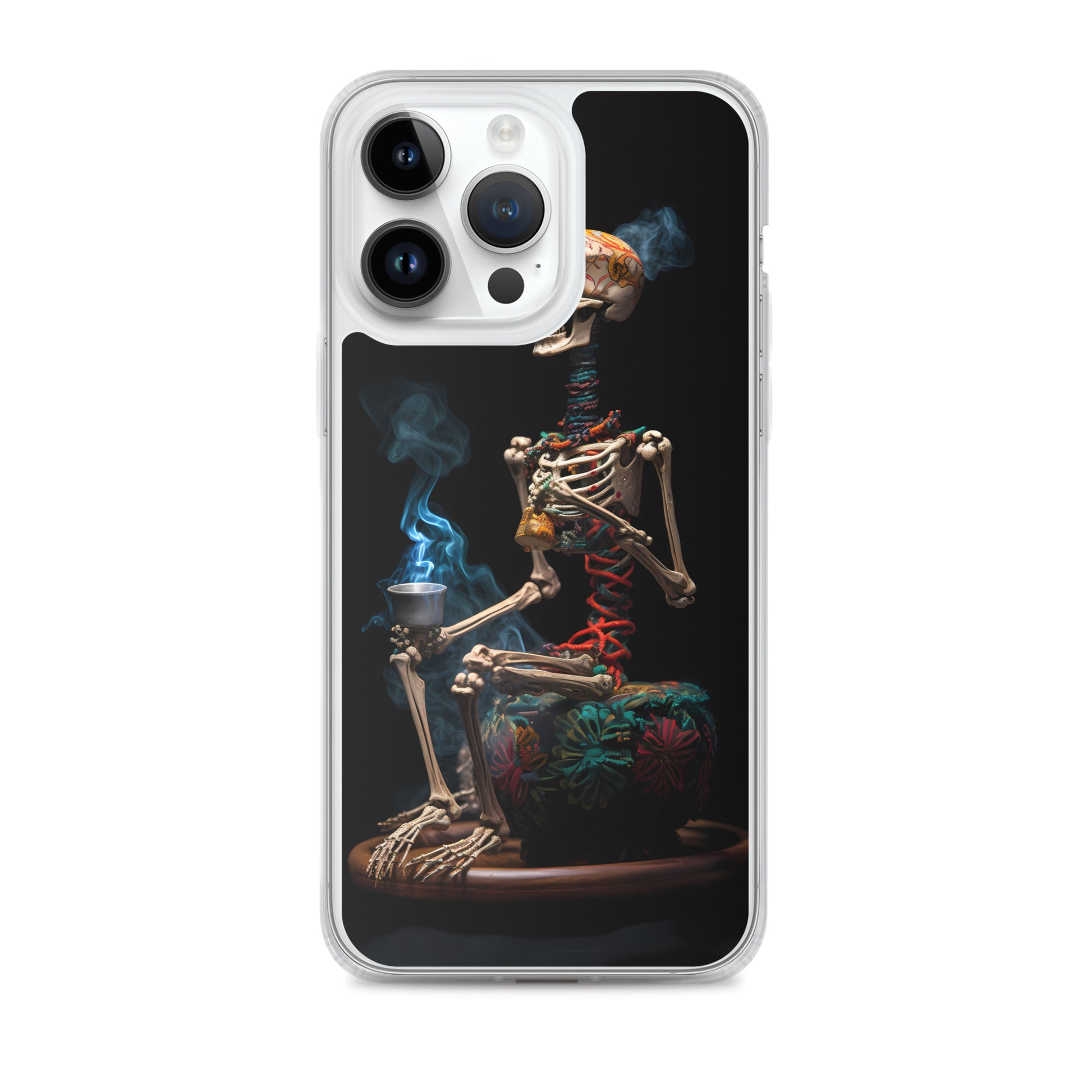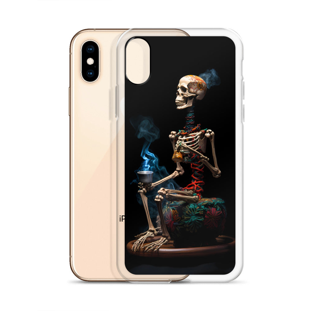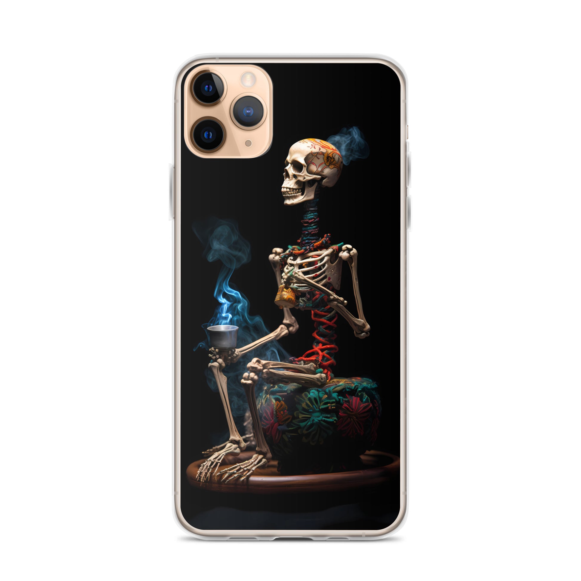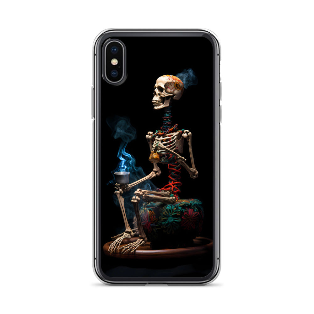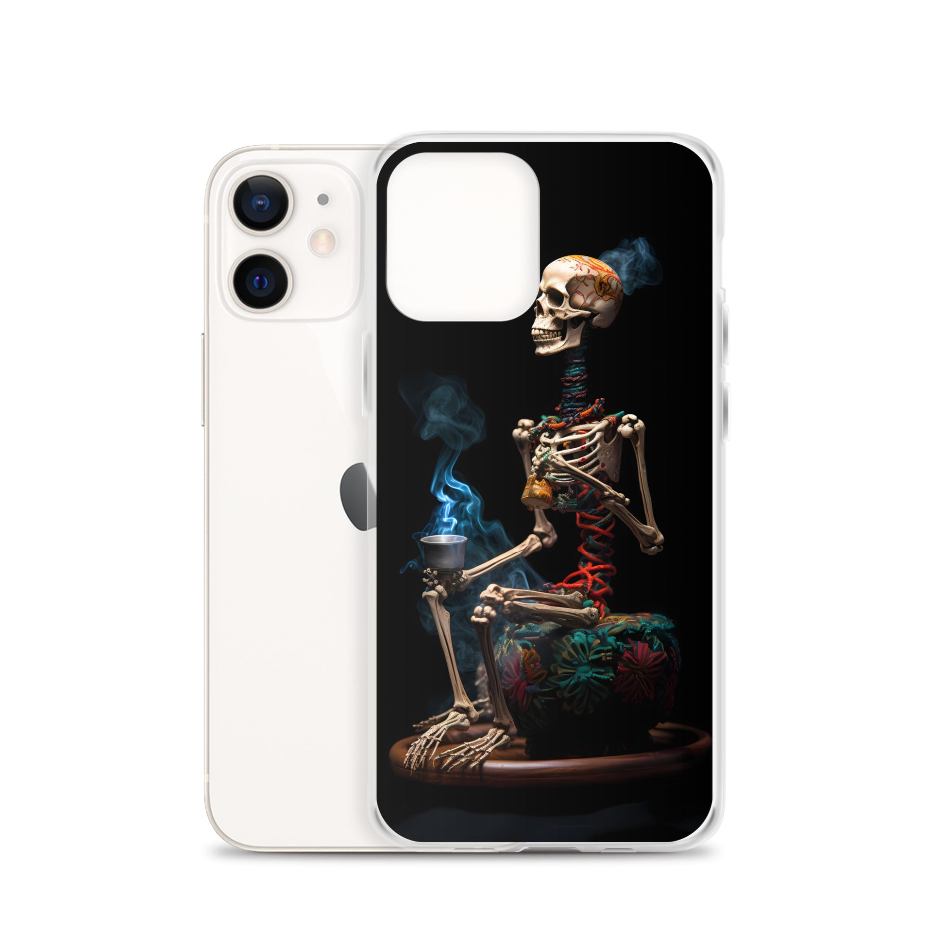 Elevate your phone style with the "Dream Smoke" Seated Skeleton iPhone Case. Inspired by hazy, dreamlike qualities, this case features a meticulously detailed still life of a skeleton sitting and smoking a cigarette. The dark humor graphic prints and symbolic props add a unique touch to the surrealist and colorful design, making it a conversation starter wherever you go.