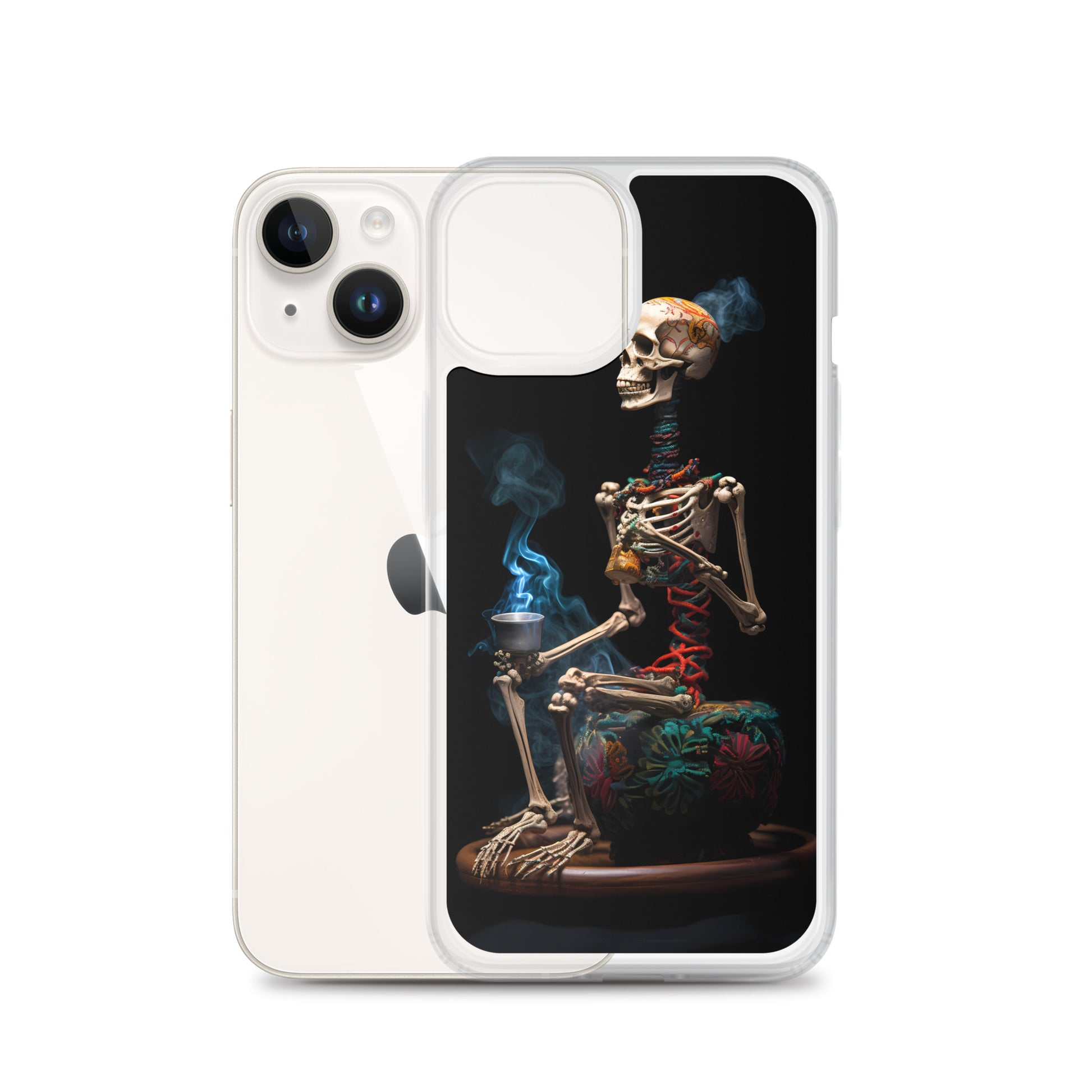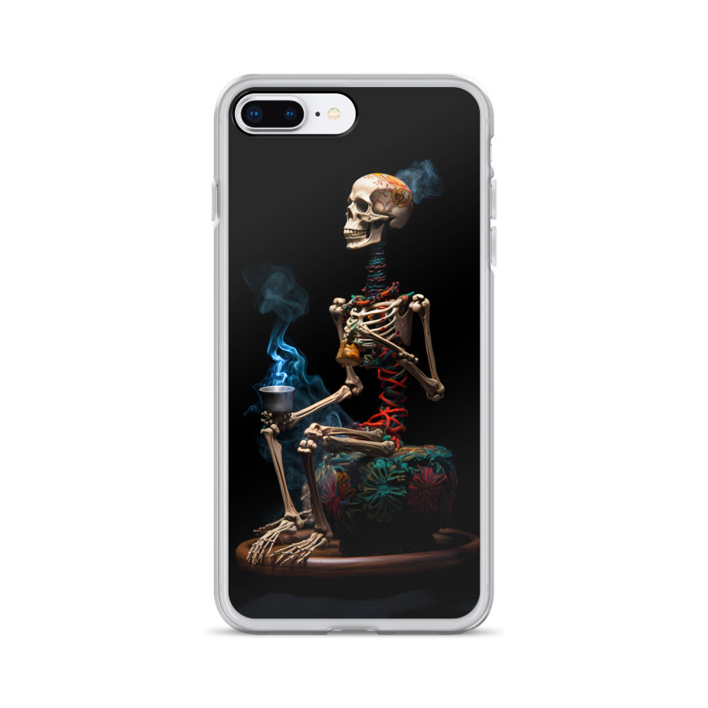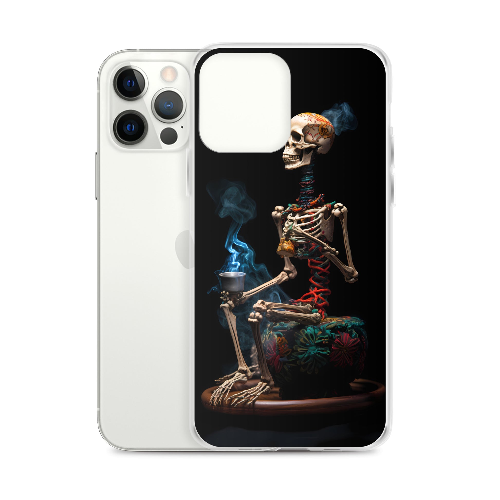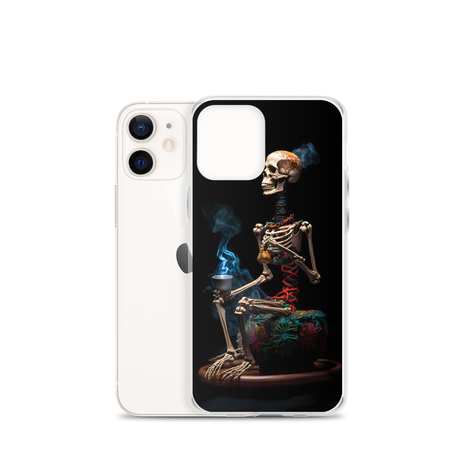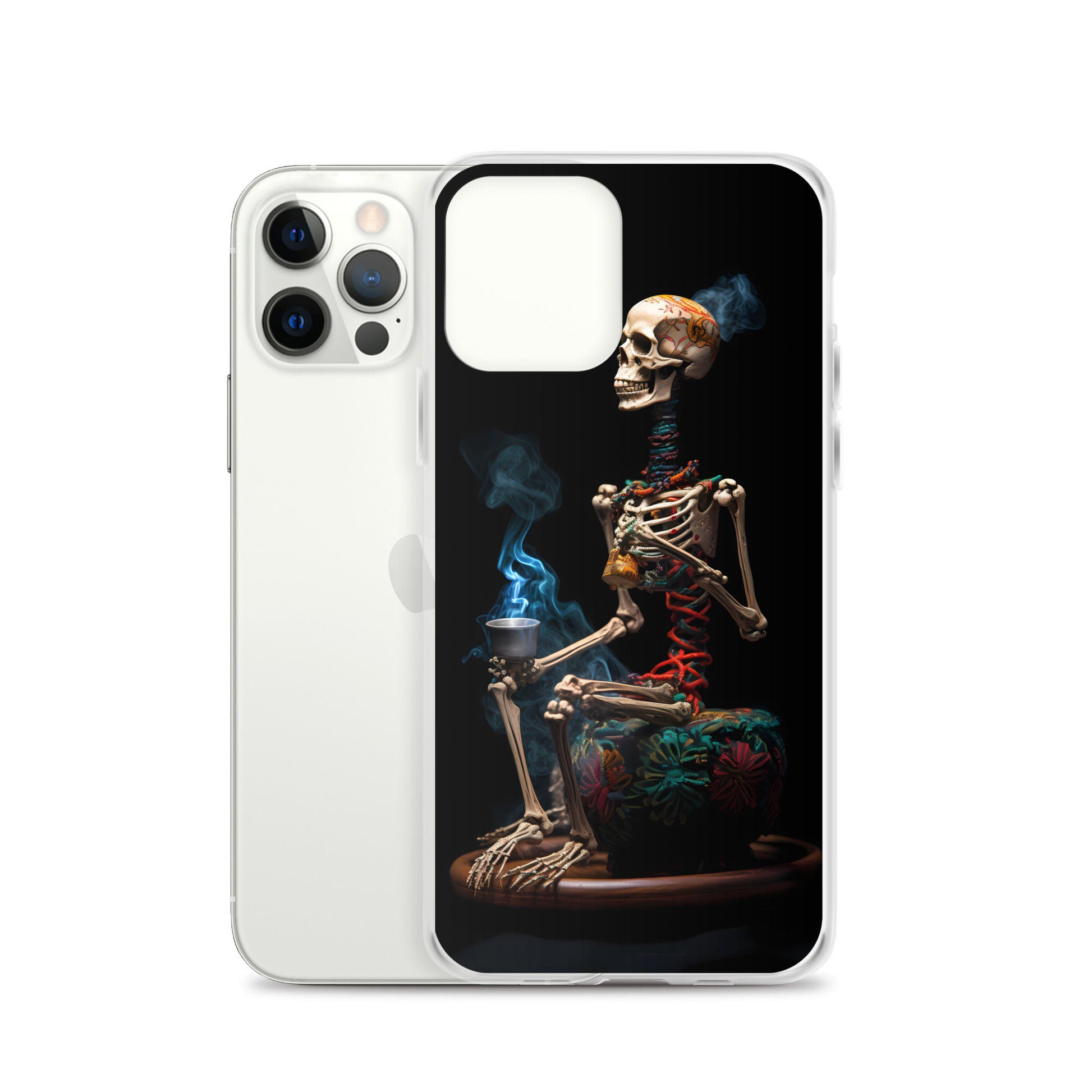Elevate your phone style with the "Dream Smoke" Seated Skeleton iPhone Case. Inspired by hazy, dreamlike qualities, this case features a meticulously detailed still life of a skeleton sitting and smoking a cigarette. The dark humor graphic prints and symbolic props add a unique touch to the surrealist and colorful design, making it a conversation starter wherever you go.