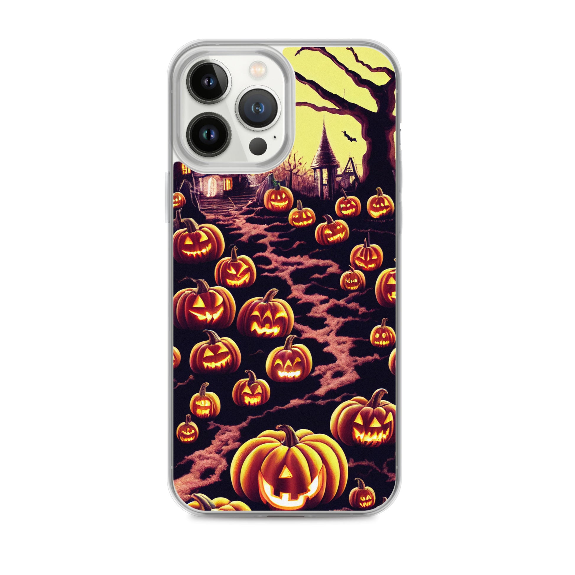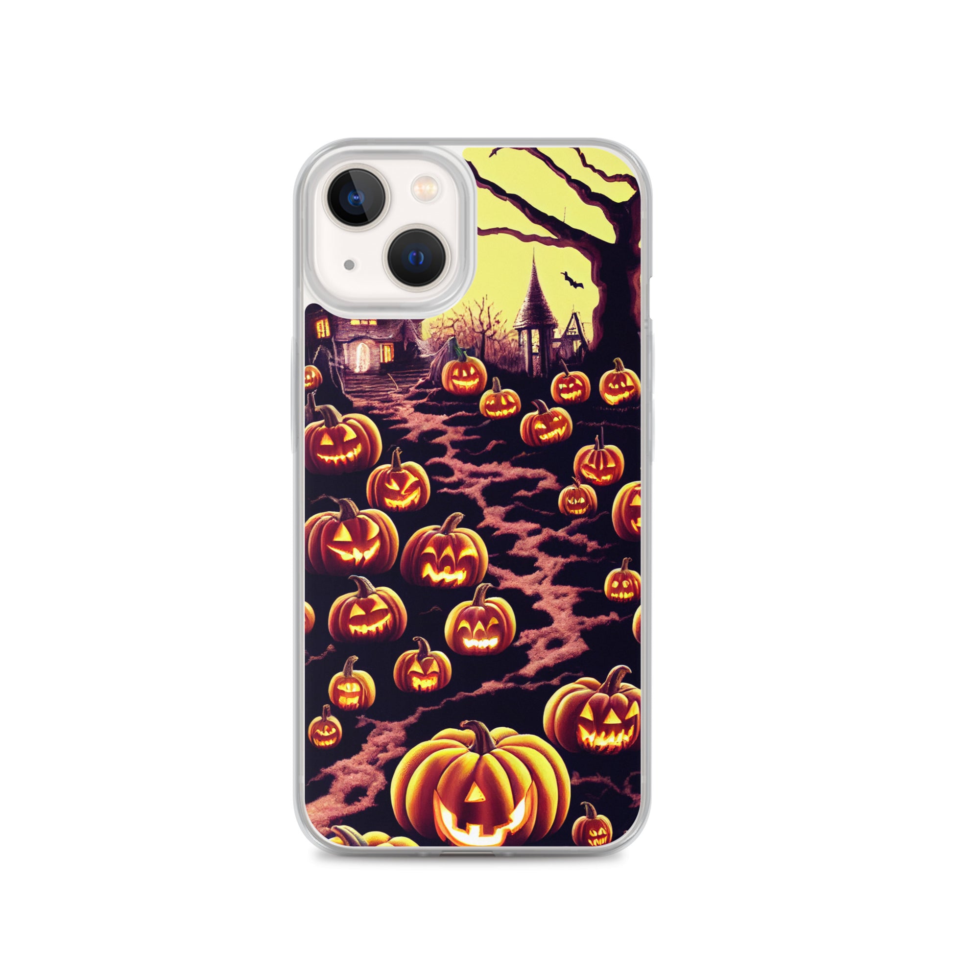 Pumpkins line the lane up to this haunted house - this Halloween-themed iPhone case is perfect for expressing your spooky style this Halloween season. This sleek iPhone case protects your phone from scratches, dust, oil, and dirt. It has a solid back and flexible sides that make it easy to take on and off, with precisely aligned port openings.
