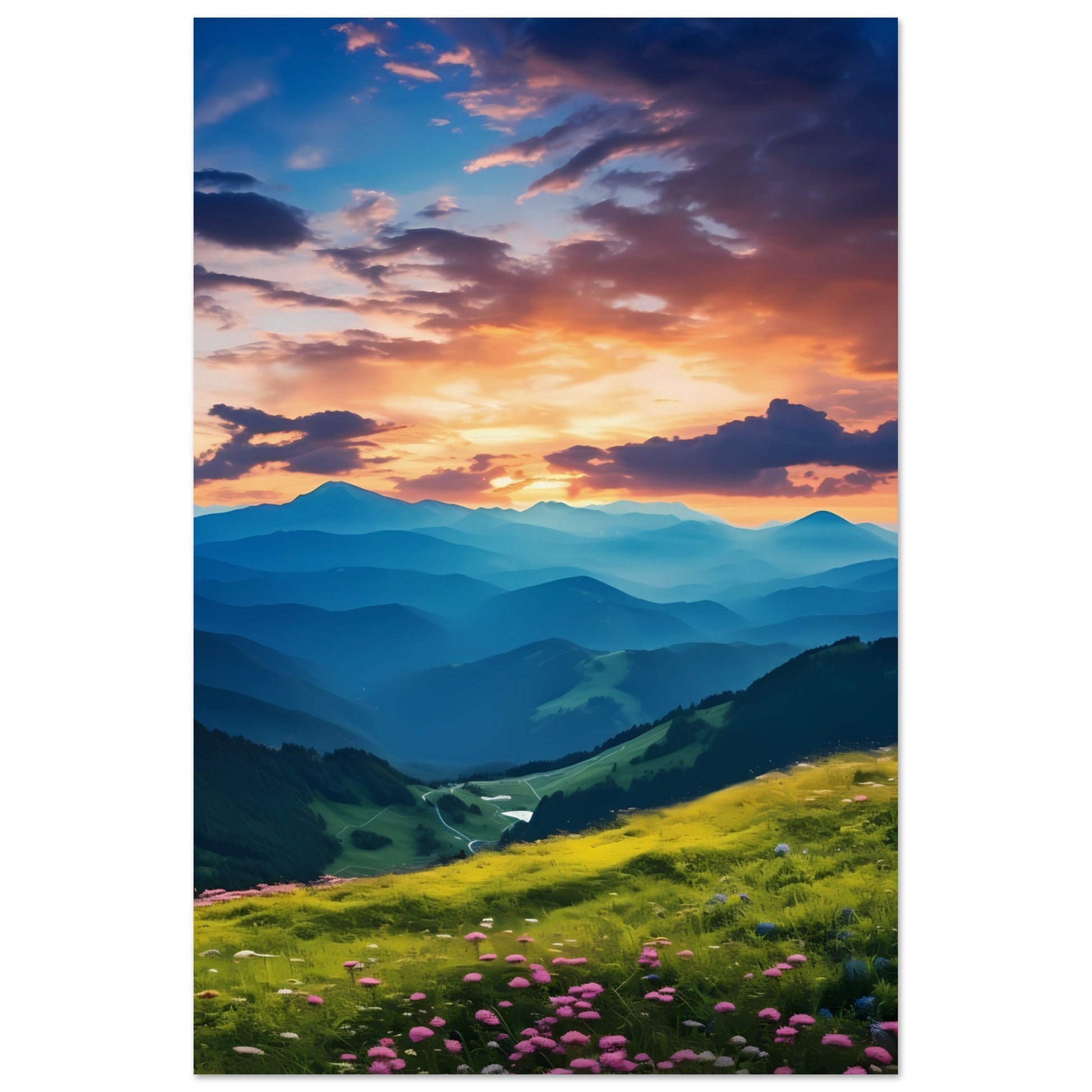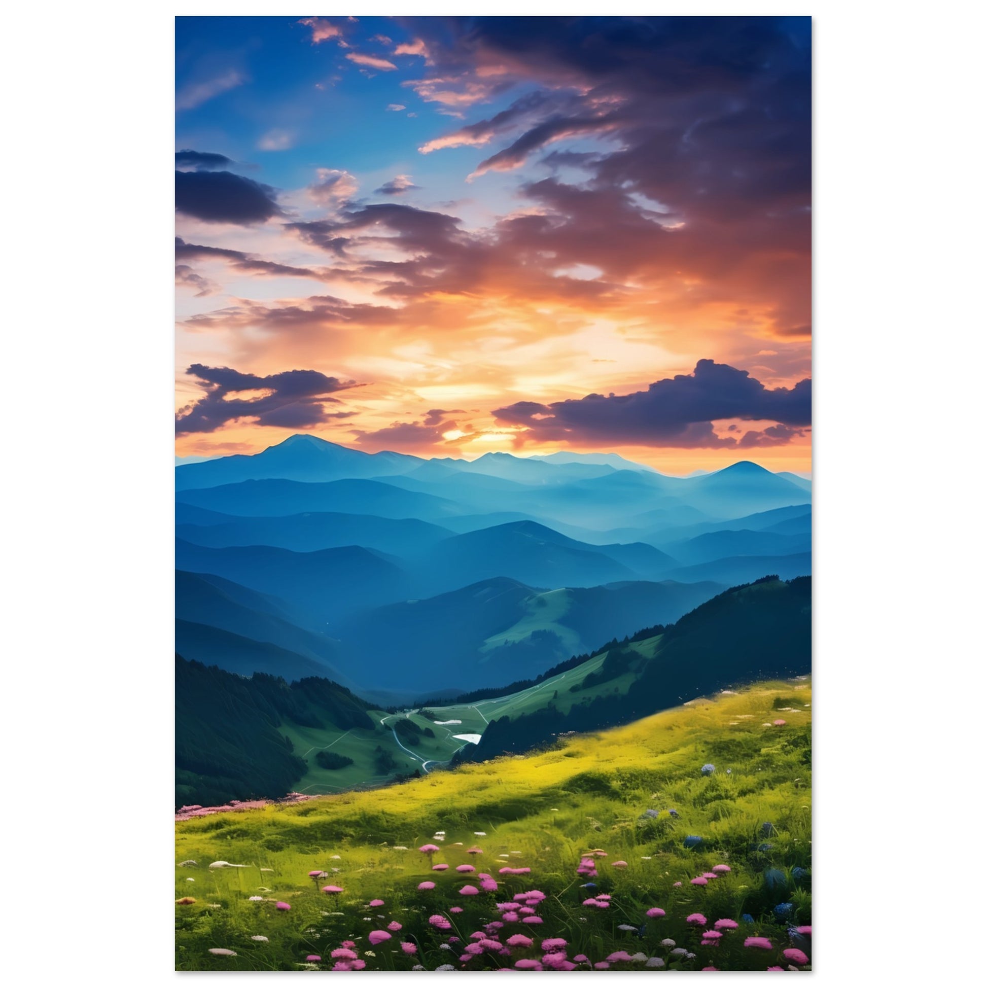 Revel in the sublime beauty of nature with our "Mountain Meadow Magic" wall art. This breathtaking landscape showcases the mesmerizing interplay of sunset hues against majestic mountain ranges. Let the tranquility of rolling hills, dotted with vibrant wildflowers, transform your living space into a serene haven.