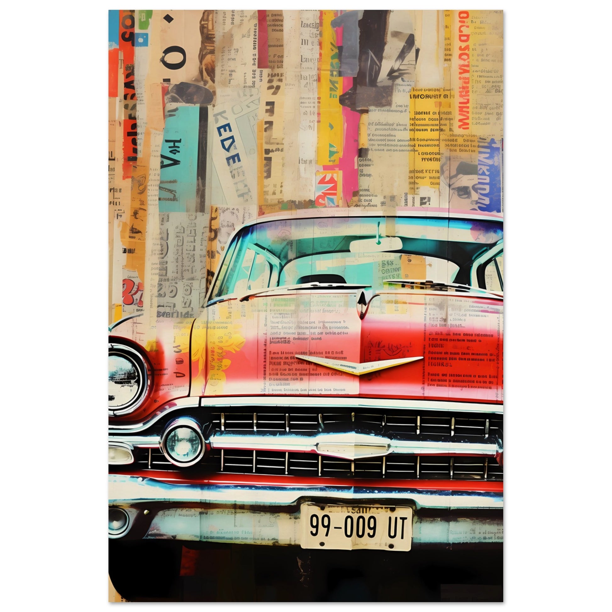 Step into a nostalgic journey with "Retro Revelations." This collage seamlessly blends vintage allure with modern artistry, showcasing an iconic car juxtaposed against a backdrop of fragmented memories. Perfect for evoking a sense of times gone by, this piece adds a touch of classic charm to any space.